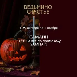 Чтобы призвать скидку на сайте используйте промокод SAMHAIN, а в розничных магазинах скажите кодовое слово «Самайн» при оплате покупок на кассе.