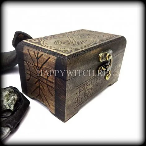 Деревянная шкатулка с рунескриптом и с заклинанием из рун. Авторская ручная работа