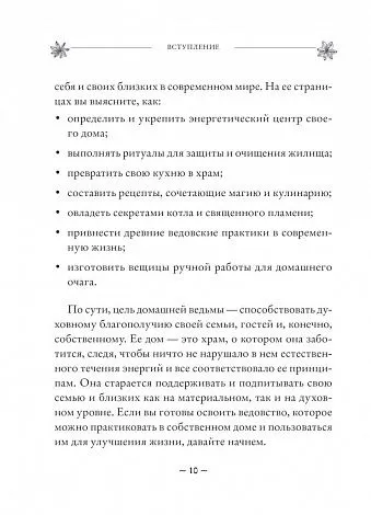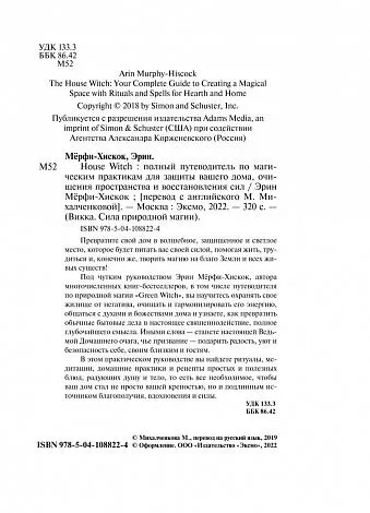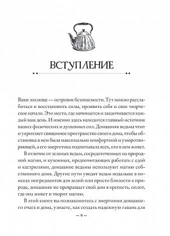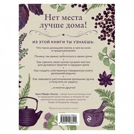 Книга "House Witch" Эрин Мёрфи-Хискок расширяет идею кухонного ведовства, напоминая о том, что все жилище — это оплот вашего благополучия. Автор опирается на проверенные ведовские инструменты заботы о доме и домочадцах — силу огня, помощь духов и божеств, техники очищения и защиты, и конечно, травы и магическую кулинарию. Книга адресована тем, кто уже практикует магию, кто хочет в первых раз попробовать себя в сотворении светлых чар или просто интересуется созидательной стороной ведовства. Увлекательные и несложные рекомендации помогут развить восприятие жилища как Места Силы даже у самых неугомонных ведьм, которых не застать дома. А людей, живущих под девизом "мой дом — моя крепость", книга вдохновит взглянуть на родные стены новым — мистическим — взглядом.