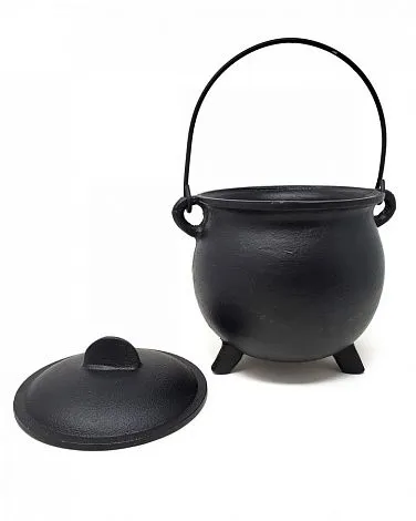 Для начала обратите внимание на форму: круглый и глубокий — вот что вам нужно, ведь котел символизирует само Творение — бездну, из которых возникло все сущее, и материнскую утробы. Лучше выбрать котел с крышкой, ведь эта емкость — магическое пространство, и чтобы чары варились без внешних влияний, мы прикрываем котел крышкой от любопытных глаз и негатива. Далее определяемся с материалом. Ведьмы любят основательность и ценят долговечные вещи, поэтому порекомендуют вам чугунный котелок, он с годами будет становиться только сильнее. А чтобы не ограничивать себя в местах для обрядов, выбираем небольшой котелок — для ритуальных нужд, а не приготовления пищи. Такой будет не затруднительно переносить с места на место и даже брать с собой.