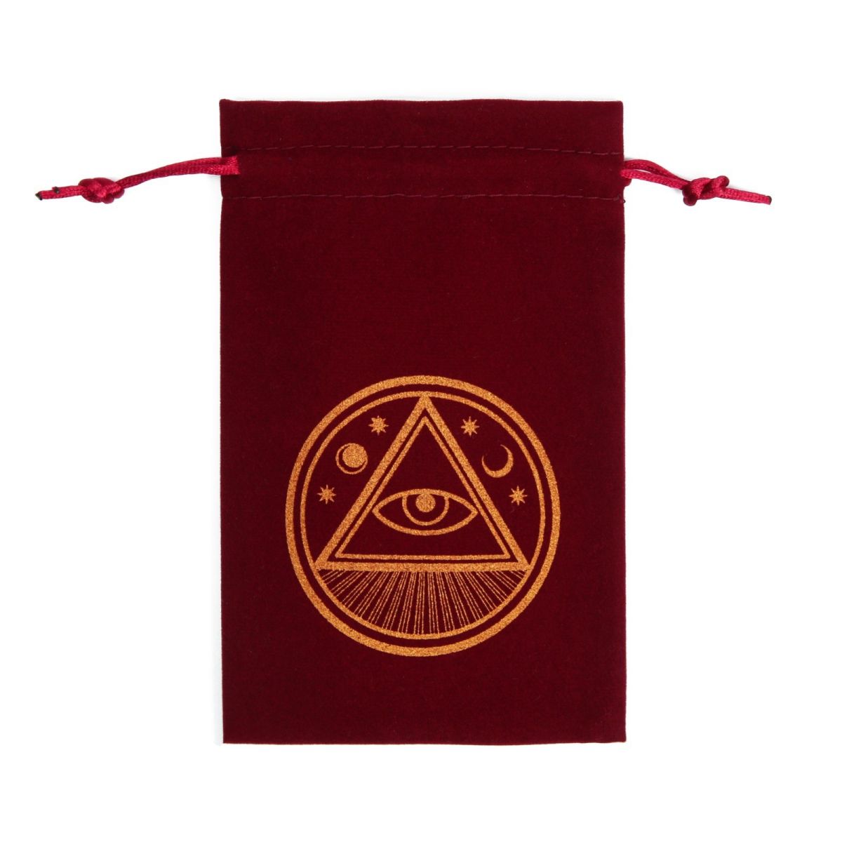 Для тех, кто не боится смотреть вглубь тайн и ищет истину без покровов. Этот мешочек — могущественный талисман, заряженный энергией древнейшего символа. Глубокий тёмно-красный бархат, цвета страсти, силы и защиты, обволакивает вашу колоду, как плащ верховной жрицы. На нём сияет Всевидящее Око — вечный страж, видящий сквозь время и пространство.