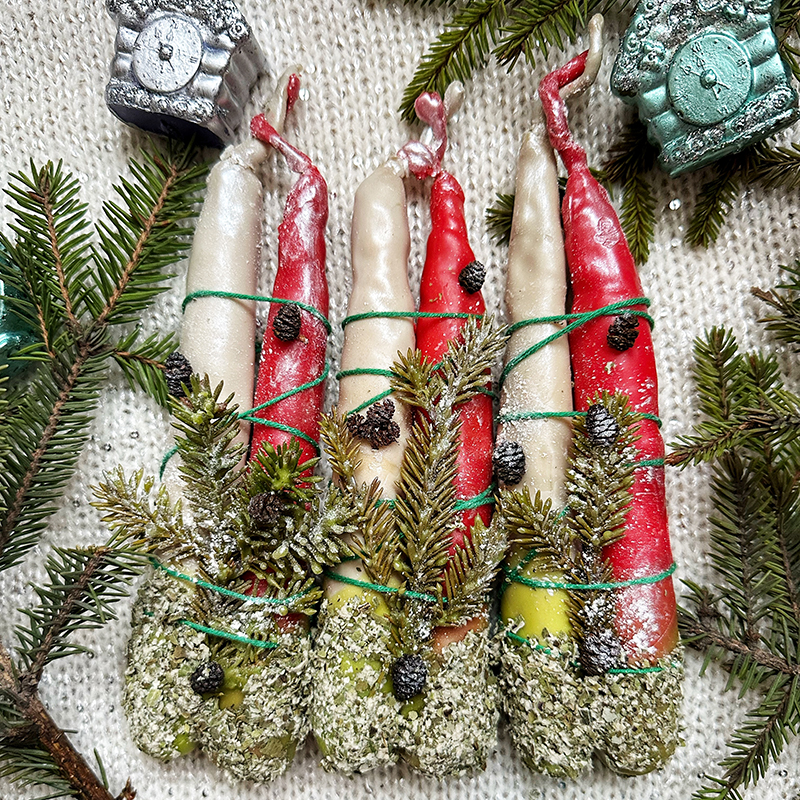 Катаная живая свеча "Йоль" с ольхой, елью, секретный ингридиент