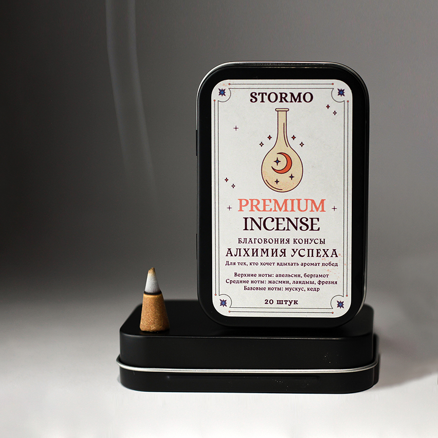 Stormo "Алхимия успеха" — это благовония, которые вдохновляют на движение вперёд. Конусы в матовой чёрной металлической коробке — это не просто аромат, а часть личного ритуала. они помогают сосредоточиться, прояснить мысли и настроиться на продуктивность. Верхние ноты апельсина и бергамота заряжают энергией, сердце раскрывается белыми цветами, а в базе — уверенный древесно-мускусный след. Конусы подойдут для утренних практик, работы с намерением или вечернего планирования. В упаковке — 20 конусов, каждый из которых дарит до 15 минут ароматного сосредоточения.