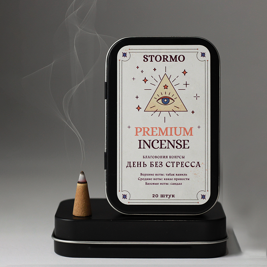 Stormo "День без стресса" — аромат, который словно ставит мир на паузу. Тёплый, уютный, с медитативной глубиной, он идеален для завершения дня, отдыха, медитаций или расслабленного утреннего настроя. Верхние ноты табака и ванили мгновенно окутывают теплом, какао с пряностями добавляют мягкой гурманики, а сандал фиксирует аромат, создавая ощущение внутренней стабильности. Конусы тлеют до 15 минут, а их аромат будто говорит: «всё хорошо».