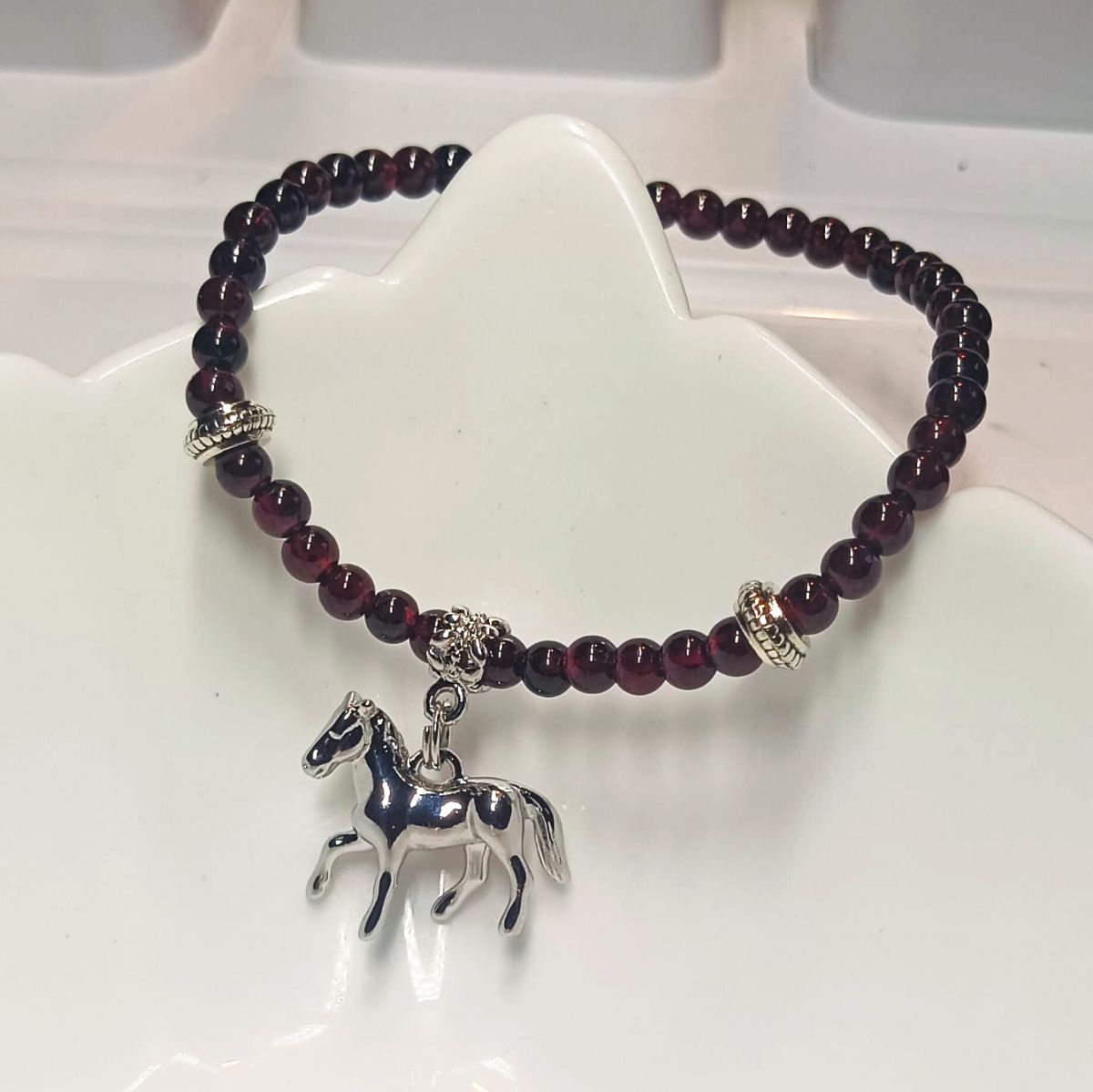 Браслет "Лошадка" с кулоном, гранат