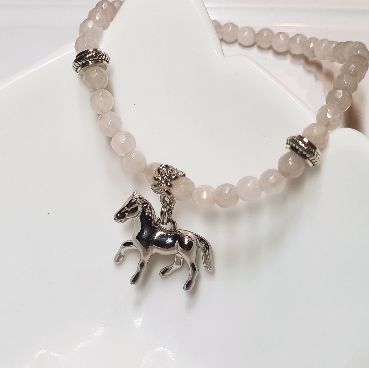 Браслет "Лошадка" с кулоном, розовый кварц