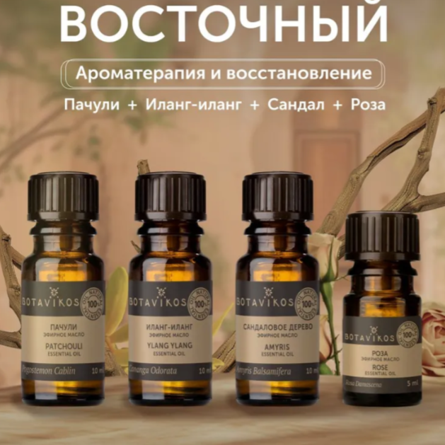 Набор эфирных масел (пачули, иланг-иланг, сандаловое дерево, роза дамасская), 35 мл