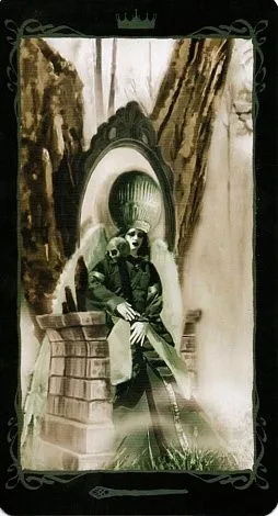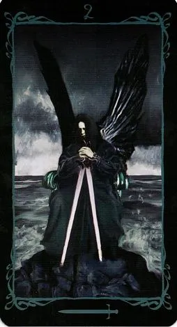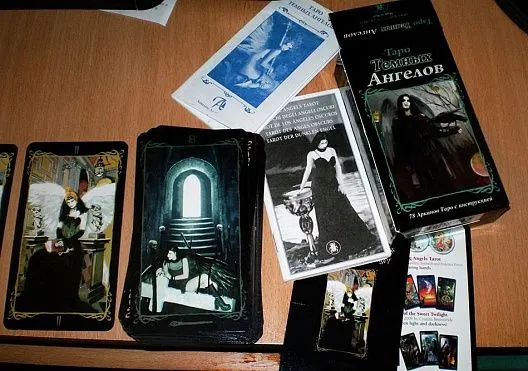 Каждая карта Таро Тёмных Ангелов является воротами в мир, который ждёт окончания времён. Каждая карта - это дверь, через которую мы можем покинуть мирское бытие и унестись на крыльях ангелов. Чтобы использовать эту колоду, надо стать частью этого мира и следовать туда, куда они зовут, в темноту, в надежду и страх, которые живут в нас.